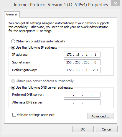 Assign an IP Address to the card. I use a local private address as follows, The gateway is the IP that I will later assign to an emulated Cisco device. It makes sense for my purposes, but your needs may be different.