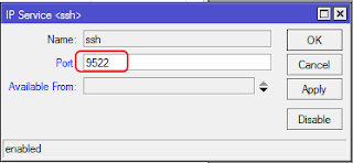 Log in to the router using Winbox, then click on IP->Services